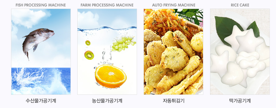 국내는 대형단체급식식자재공장, 수협, 대형수산물 가공공장등에 독점적으로 공급하고 있습니다. 낙후된 농산물가공분야에 수율! (경제성), 위생! (HACCP),안전! (PL)을 총족시키는 최고의 기계를 제공하기 위해 다년간 수집한 자료와 까다로운 수산물가공기계 개발로 축적된 기술을 바탕으로 선진국기계의 결점을 보완한 농산물가공기계를 출시하게 되었습니다.